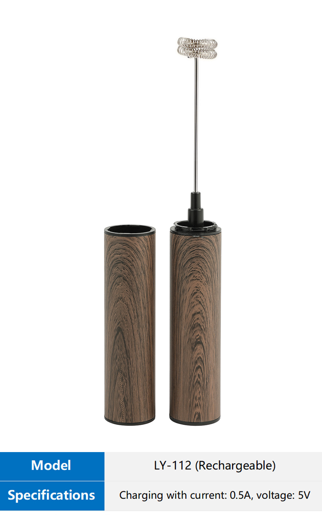 LY-112 Dark Walnut Rechargeable Milk Frother